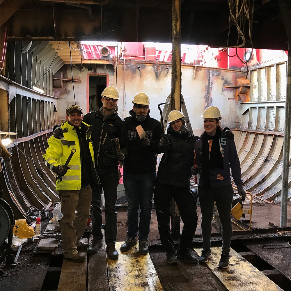 Im Rumpf des nostalgischen Feuerschiffs „Gannett 1954“ entsteht ein einzigartiger Veranstaltungsraum: Rund 70 Dresos packten beim Rückbau tatkräftig mit an und unterstützten den Betreiberverein bei seinem engagierten Vorhaben.