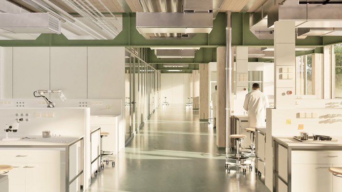 With a total of 16,000 m² of main floor space, the compact 5-story building provides 3 floors for students, practitioners, and researchers from the Center for Dental Medicine (ZZM) organizational unit, as well as laboratory space for research groups from the Comprehensive Cancer Center Zurich (CCCZ). The CCCZ, as part of the University Hospital Zurich (USZ), the University of Zurich (UZH) and in collaboration with the Balgrist University Hospital and the University Children's Hospital Zurich (KiSpi), brings together various research groups and thus the knowledge of experts in cancer medicine and cancer research in the new building. The heart of the building is the atrium, which serves as an access and recreation area. The polyclinic houses the large lecture hall and office workspaces.