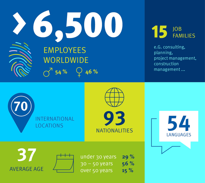 - 6,500 employees from 93 nations and speaking a total of 54 languages work at over 70 offices worldwide.