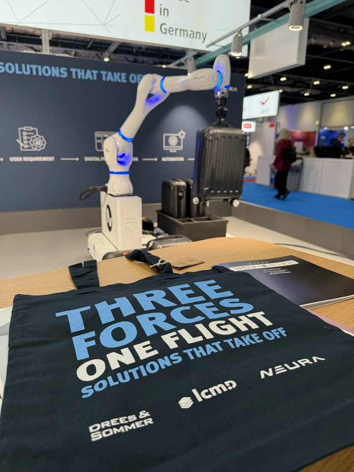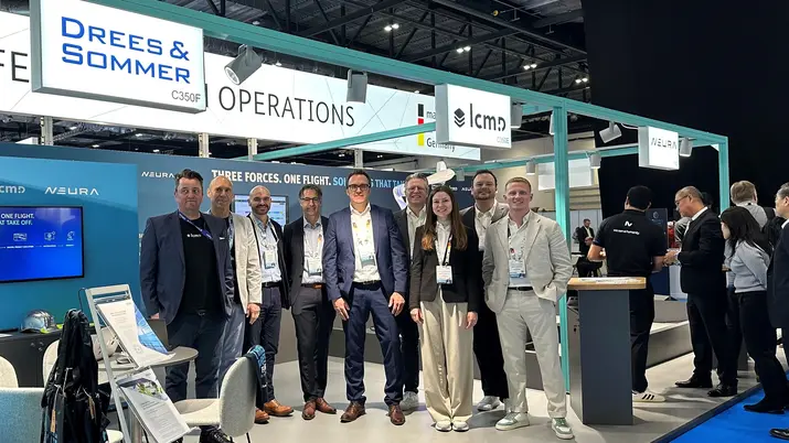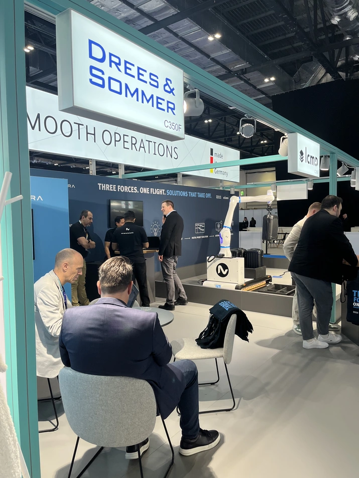 Drees & Sommer presented alongside its partners lcmd and NEURA Robotics, demonstrating how robotics-based solutions can be integrated into real-world airport processes—from concept to operational implementation. The focus was on concrete use cases that create measurable added value for airport operations, passenger flow, and resilience.