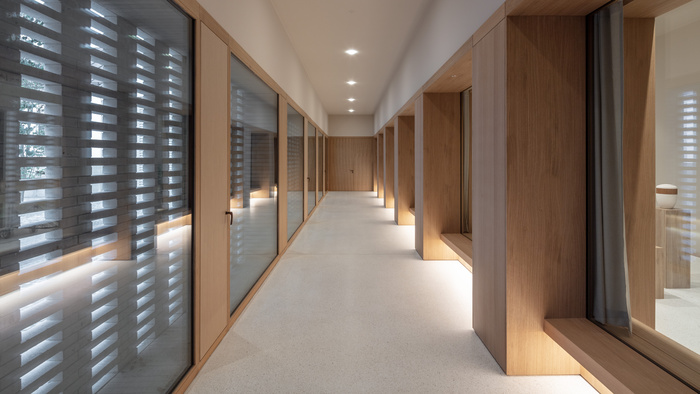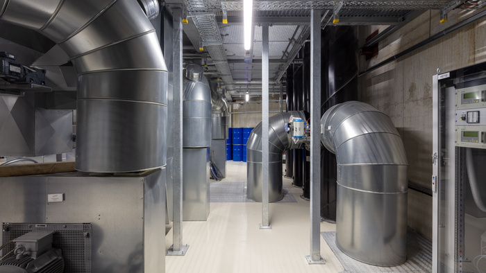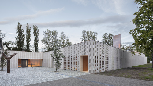 The single-story building now replaces its forty-year-old predecessor. Redesigned and equipped with state-of-the-art technology, it adorns the functional rooms of the incinerator. A farewell room and several small viewing rooms complement the crematorium.
