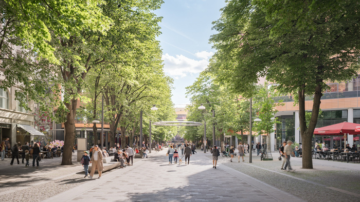 Special features of Potsdamer Platz include an innovative rainwater system that enables water reuse for irrigation and toilet flushing. Additionally, an underground supply and waste management center enhances the districts' operational efficiency and sustainability. The redesign of Alte Potsdamer Straße into a pedestrian zone further improves the quality of stay and strengthens connectivity within the district.