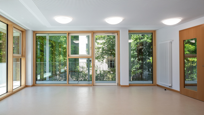 New construction of a residential complex with a nursery, community center and underground parking garage creates a popular and lively meeting place for people of all ages