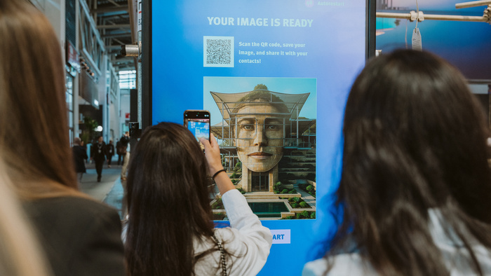 Our AI selfie station, developed entirely in-house, provided interaction: visitors experienced the transformation of their own into a building. From Bauhaus villas to comic-style skyscrapers, there were many opportunities to experience the theme of transformation for themselves.
