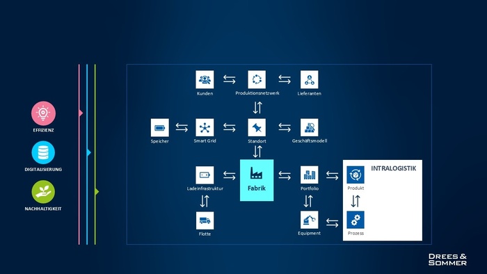 Die Versorgungssicherheit nimmt eine immer bedeutendere Rolle ein, sodass eine funktionierende Logistik essentiell für unsere Wirtschaft ist. Immer wichtiger wird die integrale Logistikplanung – d.h. vom Informations- und Materialfluss, über die Technikauswahl mit einer optimierten Transportplanung hin zu dem passenden Gebäude. Mit Drees & Sommer haben Industrie und Produktion, Handel und eCommerce sowie Transport- und Logistikdienstleister einen Planungs- und Beratungspartner mit tiefgehender Logistik- und Immobilien-Expertise sowie weitreichendem, branchenübergreifendem Know-how an ihrer Seite.