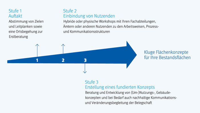 Zukunftsfähige, flexible Flächenkonzepte sichern ein professionelles Beratungsumfeld für Bürger:innen, schaffen Sicherheit und Ruhe für die Mitarbeitenden und denken Mobilität und Arbeitsmodelle neu.