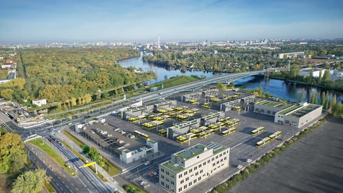 Der neue Omnibus-Betriebshof spielt eine zentrale Rolle bei der Instandhaltung, Ladung und Abstellung der neuen E-Busse. Auf dem rund 44.000 Quadratmeter großen Gelände entstehen neben einer Werkstatt- und Servicehalle auch ein modernes Verwaltungsgebäude sowie Abstell- und Lademöglichkeiten für rund 200 E-Busse.