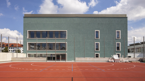 Benannt nach den barocken Künstlern Cosmas Damian und Egid Quirin Asam, verbindet das Asam Gymnasium in München künstlerisches Erbe mit moderner Bildungsarchitektur. Die Zahl der Schüler:innen des Gymnasiums wuchs in den letzten Jahren rasant. Somit wurde die Turnhalle aus den 1960er-Jahren zurückgebaut und durch einen modernen Neubau ersetzt. Heute befindet sich dort ein fünfgeschossiges Erweiterungsgebäude. Der Neubau umfasst eine Mensa, offene Lernbereiche, eine Dreifachturnhalle und eine Tiefgarage. Auf dem Dach der Sporthalle befindet sich ein Allwetterplatz, der den Schüler:innen Raum für Bewegung und Begegnung bietet.