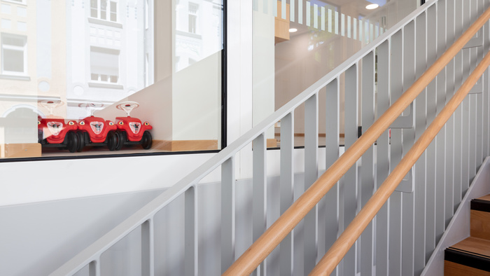 Drees & Sommer unterstützte den Bau in der Projektleitung, Objektüberwachung und Projektsteuerung gemäß AHO. Im ersten Bauabschnitt entstanden Räume für die Volkshochschule und die Stadtteilbibliothek. In einem zweiten Bauabschnitt folgten ein Bürgersaal, eine viergruppige Krippe und die Wohnungen. Das Neubauensemble besteht aus einem vierstöckigen Vorderhaus mit der Kinderkrippe in den ersten beiden Geschossen. Darüber liegen 15 geförderten Mietwohnungen mit drei bis fünf Zimmern. Das Bürgerhaus befindet sich in einem separaten Gebäude und schließt an die bestehende Stadtbibliothek an. Der Bürger- und Kultursaal sowie die dazugehörigen Nebenräume vervollständigen den Komplex.