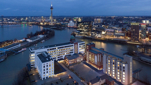 Was haben Diamantmehl, Denkmalschutz und Düsseldorf gemeinsam? In der Nähe des heutigen Düsseldorfer Medienhafens entstand 1906 das Hauptgebäude einer industriellen Getreidemühle von Georg Plange. Heute befindet sich an der historischen Stätte der Plange Mühle Campus – ein modernes, gemischt genutztes Quartier, das Büroflächen, Gastronomie, eine Orthopädieklinik und denkmalgeschützte Bauten aus dem frühen 20. Jahrhundert verbindet. Grünflächen und großzügige Außenanlagen laden zum Verweilen ein. Drees & Sommer unterstützte den Projektentwickler Harbour Properties Development dabei, die Nachhaltigkeit vor Ort zu verbessern: von der ersten Einschätzung bis zur finalen DGNB-Zertifikatsvergabe.
