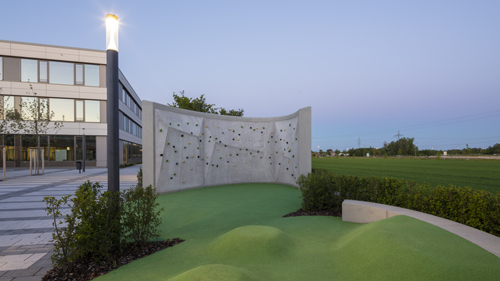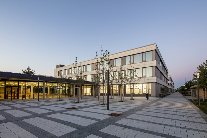 - Grünflächen, Ruhezonen und Lernbereiche durch effektive Architektur integriert