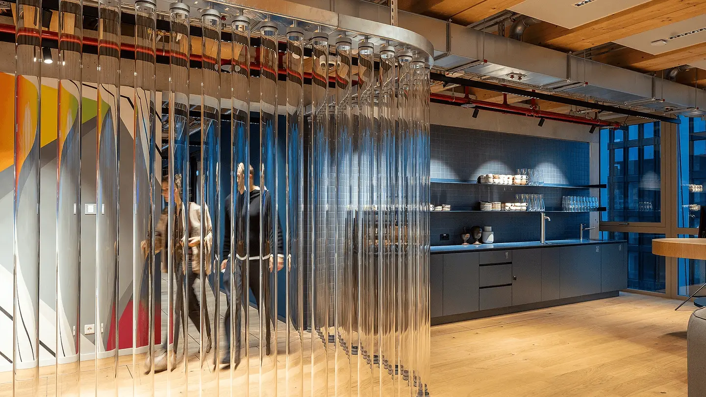 Das barrierefreie Gestaltungskonzept macht Flexibilität zur Grundlage. Intelligente Besprechungsräume und eine Bühne für Events und Gäste bieten vielfältige Nutzungsmöglichkeiten und passen sich flexibel an aktuelle und zukünftige Anforderungen an. Maßgeschneiderte Lösungen und nachhaltige Materialien zeigen, dass Qualität im Projekt oberste Priorität hatte. Sie machen die Arbeitgebermarke im neuen Berliner Büro erlebbar – als Teil eines durchdachten Gesamtdesigns.