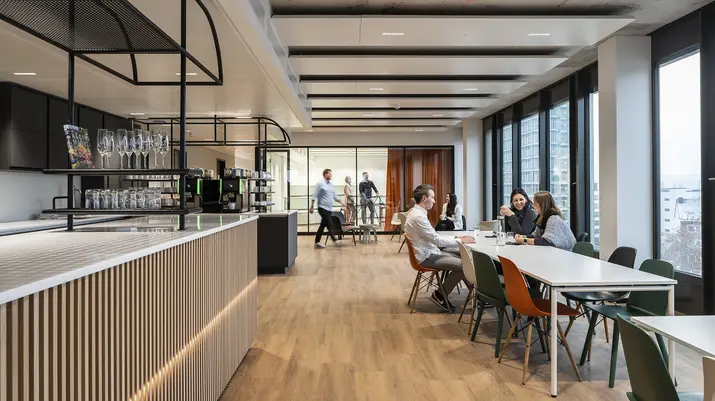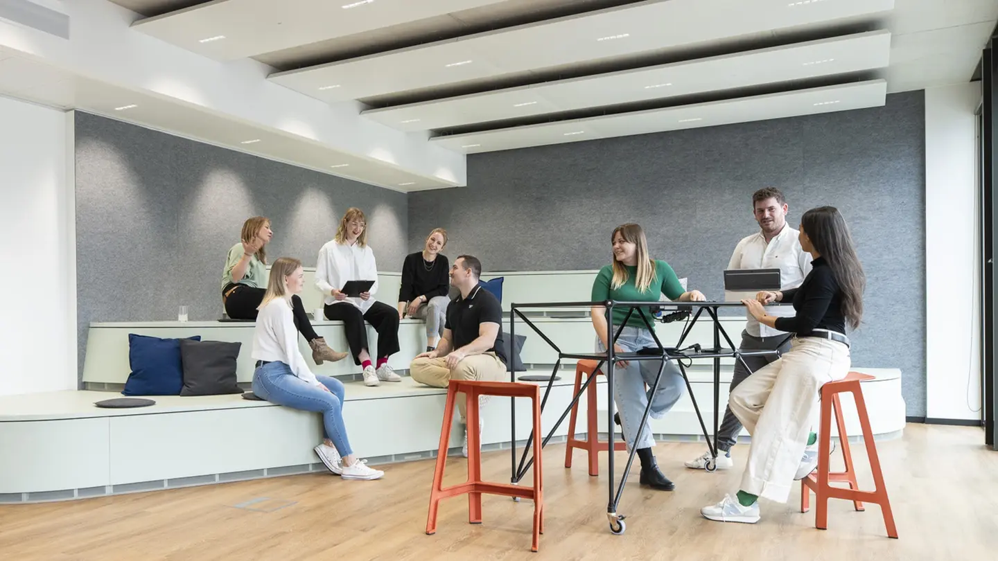 „Neben der zentralen Lage schätzen unsere Kolleg:innen vor allem, dass die Flächen so gut zu uns passen – weil wir sie exakt auf unsere Bedarfe hin geplant und umgesetzt haben. Eins der Highlights? Die frei zugängliche Dachterrasse, die dank WLAN-Ausstattung auch gern als Ort für Meetings genutzt wird. Für einen wortwörtlichen Perspektivwechsel.”