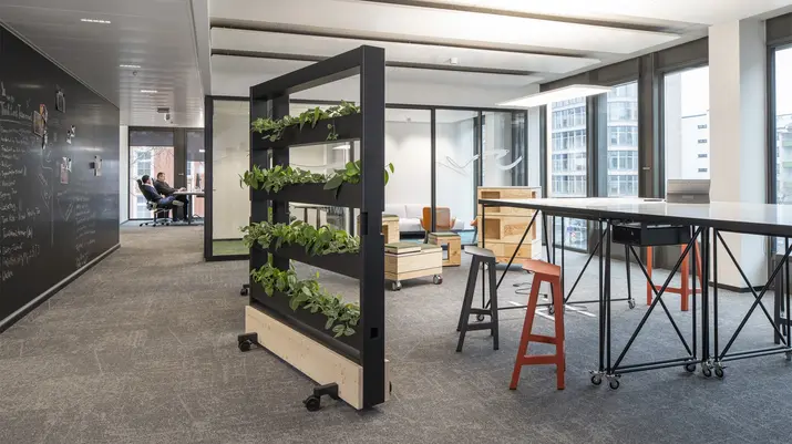 "Von uns, für uns” – unter dieses Motto könnte man das Office-Projekt des Drees & Sommer-Standorts in Frankfurt am Main setzen. Von der Bedarfsanalyse, über die Suche und Begehung potenzieller neuer Mietflächen, bis hin zu Ausstattungskonzeption, Change Management und Koordination der ausführenden Gewerke: Klassische User Centric Spaces and Places-Leistungen für Kundenprojekte haben die Kolleginnen und Kollegen hier im Eigenauftrag ausgeführt. Das Ergebnis? Ein anziehender Gemeinschaftsort mit „Next Level of Work”-Spirit.