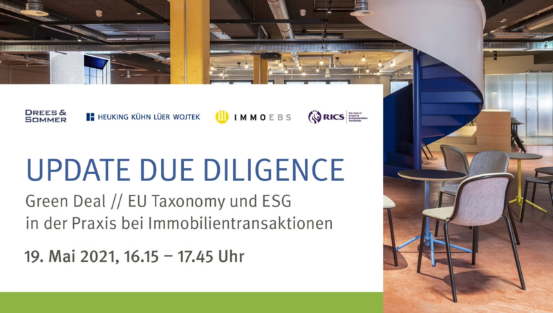 Am 19.05.2021 fand die diesjährige Ausgabe der Gemeinschaftsveranstaltung von Drees & Sommer und HEUKING KÜHN LÜER WOJTEK zum Thema „Update Due Diligence – Rechtliche und technische Themen und Trends“ statt. Dieses Mal im Fokus: Green Deal, EU-Taxonomie und ESG in der Praxis.